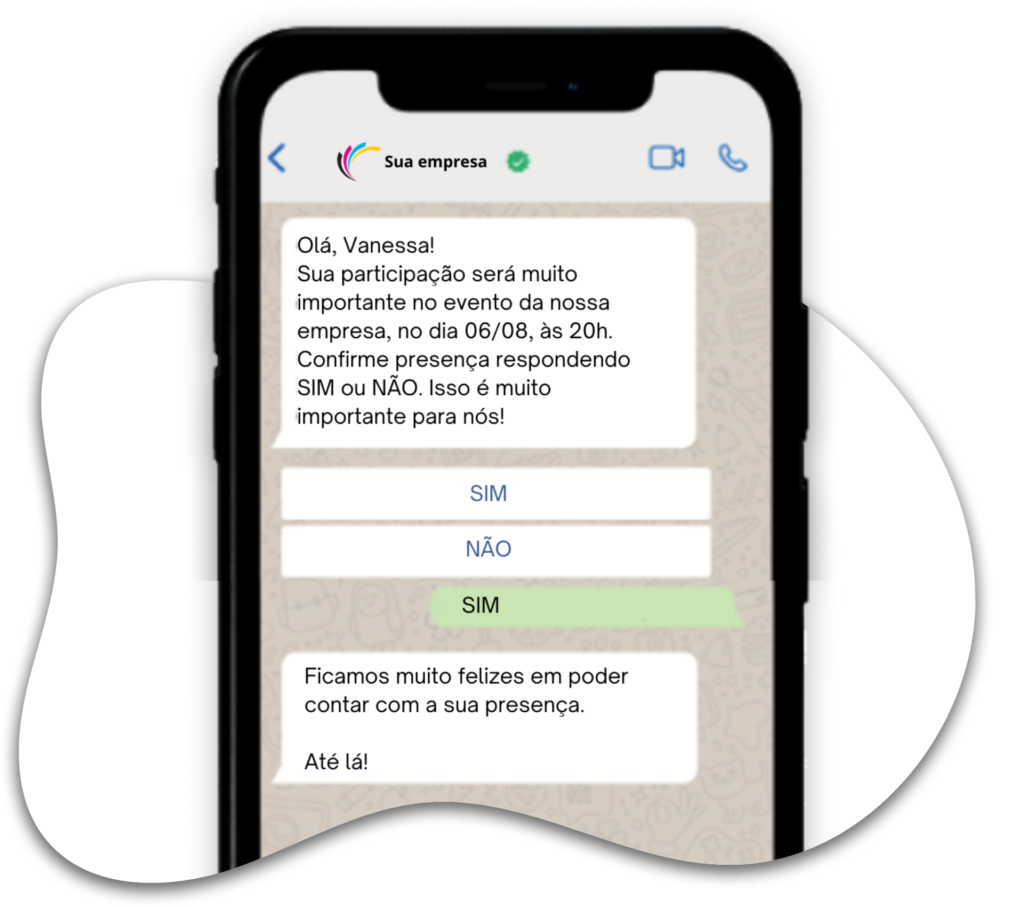 No RSVP ativo por WhatsApp, o convidado recebe o convite por esse canal com a opção de confirmar ou declinar sua presença. Um chatbot disponível 24/7 pode responder automaticamente às interações ou transferir para um agente de atendimento.